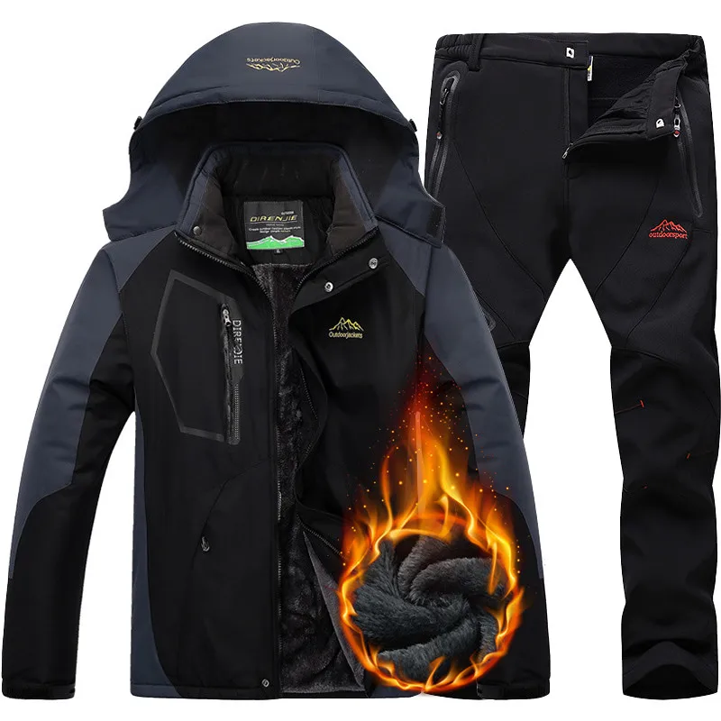 Ski Suit Men Winter Waterproof Windproof Thicken Warm Snow Clothes Men Ski Sets Jacket Skiing And S