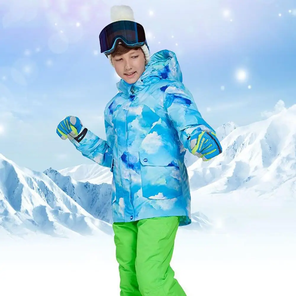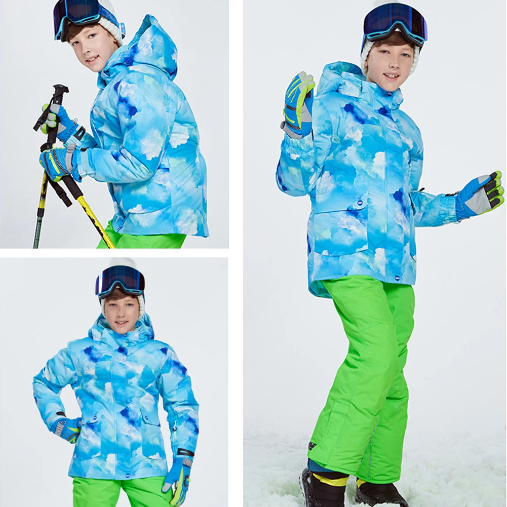 Children Boys Ski Suit -30 Degrees Ski Jacket Bib Pants Outdoor Waterproof Breathable Snowboarding