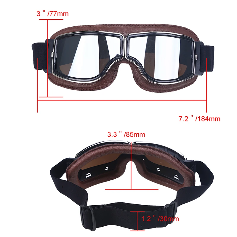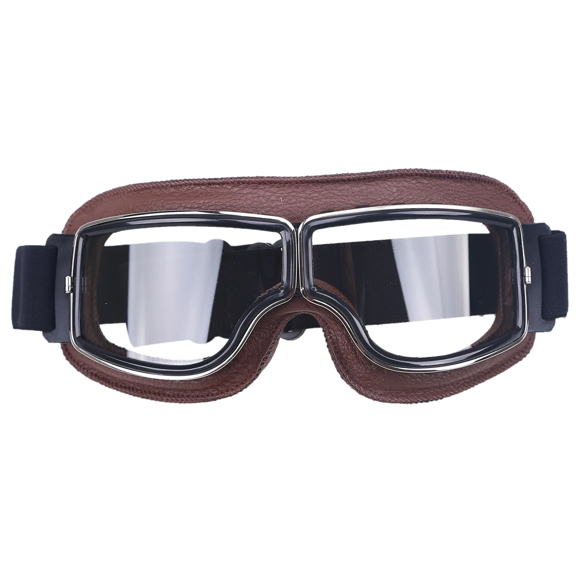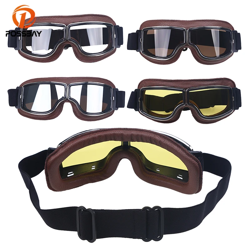 POSSBAY Man Retro Motorcycle Glasses Googles Clear Leather Motocross Moto Eyewear Glasses Snow Spor