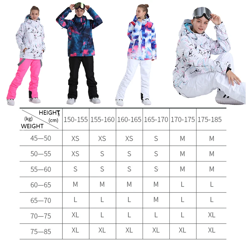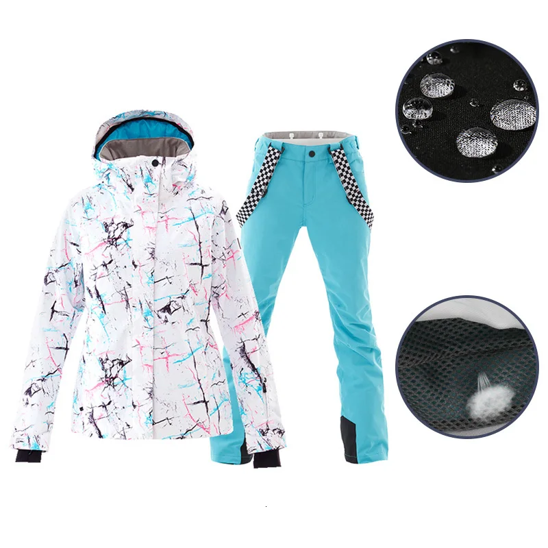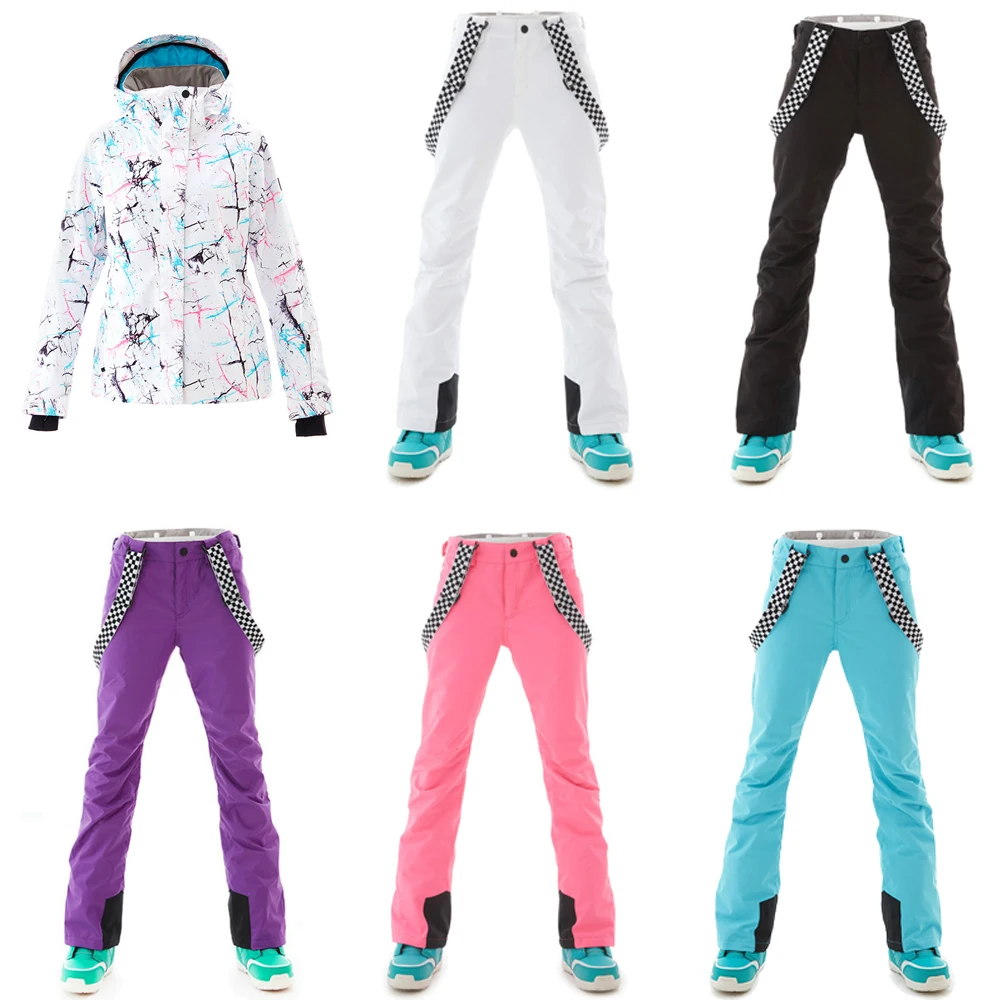 Lady Ski Suit Adult Women Winter Waterproof Breathable Warm Snowboard Jacket Bibs Pants Wind Resist